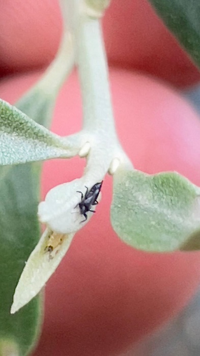 Altro insetto che sta provocando ulteriori danni è il liotripide (Liothrips oleae), ha aggiunto Guario. «Il liotripide ha sempre causato danni di bassa entità, che non hanno mai preoccupato. Ma quando tali danni raggiungono un determinato livello di soglia, allora la percezione della sua presenza diventa preoccupante. Questo fitofago compie tre generazioni su foglie, mignole e drupe. Gli adulti del litripide svernano nelle anfrattuosità del legno, si accoppiano in primavera e compaiono dopo l’accoppiamento. La femmina depone le uova sulle foglie in gruppetti. Le larve con le loro punture deformano completamente le foglie, che perdono la funzionalità fotosintetica ottimale, per cui anche i germogli tendono a crescere meno. Se la popolazione di tale insetto è notevole nell’oliveto, i danni sulla produzione diventano evidenti».