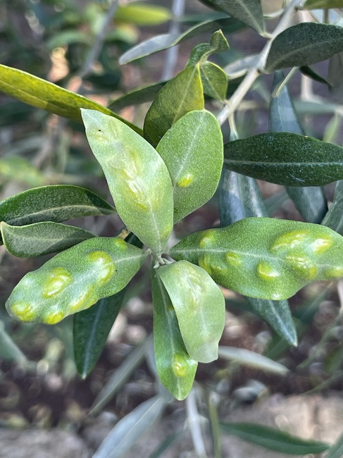 «La cecidomia è un piccolo dittero della famiglia Cecidomyiidae. Compie 1-2 generazioni l’anno, in Puglia sicuramente due. Sverna come larva di seconda età in diapausa. Gli adulti sono presenti già a fine marzo sulle foglie dell’olivo. Le larve scavano nelle foglie gallerie di piccole dimensioni. La pianta reagisce con la formazione sulle foglie di galle per isolare le larve. Il dittero si sviluppa nelle galle con successiva fuoriuscita degli adulti. Le foglie si presentano bollose sia nella pagina superiore sia in quella inferiore. Le bollosità possono interessare non solo le foglie ma anche i rametti e i germogli. La deformazione e l’aborto dei rametti e dei germogli fiorali portano alla disorganizzazione e all’interruzione dell’accrescimento fogliare e dello sviluppo vegetativo della pianta, che si presenta con un caratteristico aspetto cespugliato dei rami. Questo fitofago è attualmente presente e dannoso in Puglia soprattutto nell’areale di Ostuni (Br), ma di sicuro potrà espandersi ulteriormente».