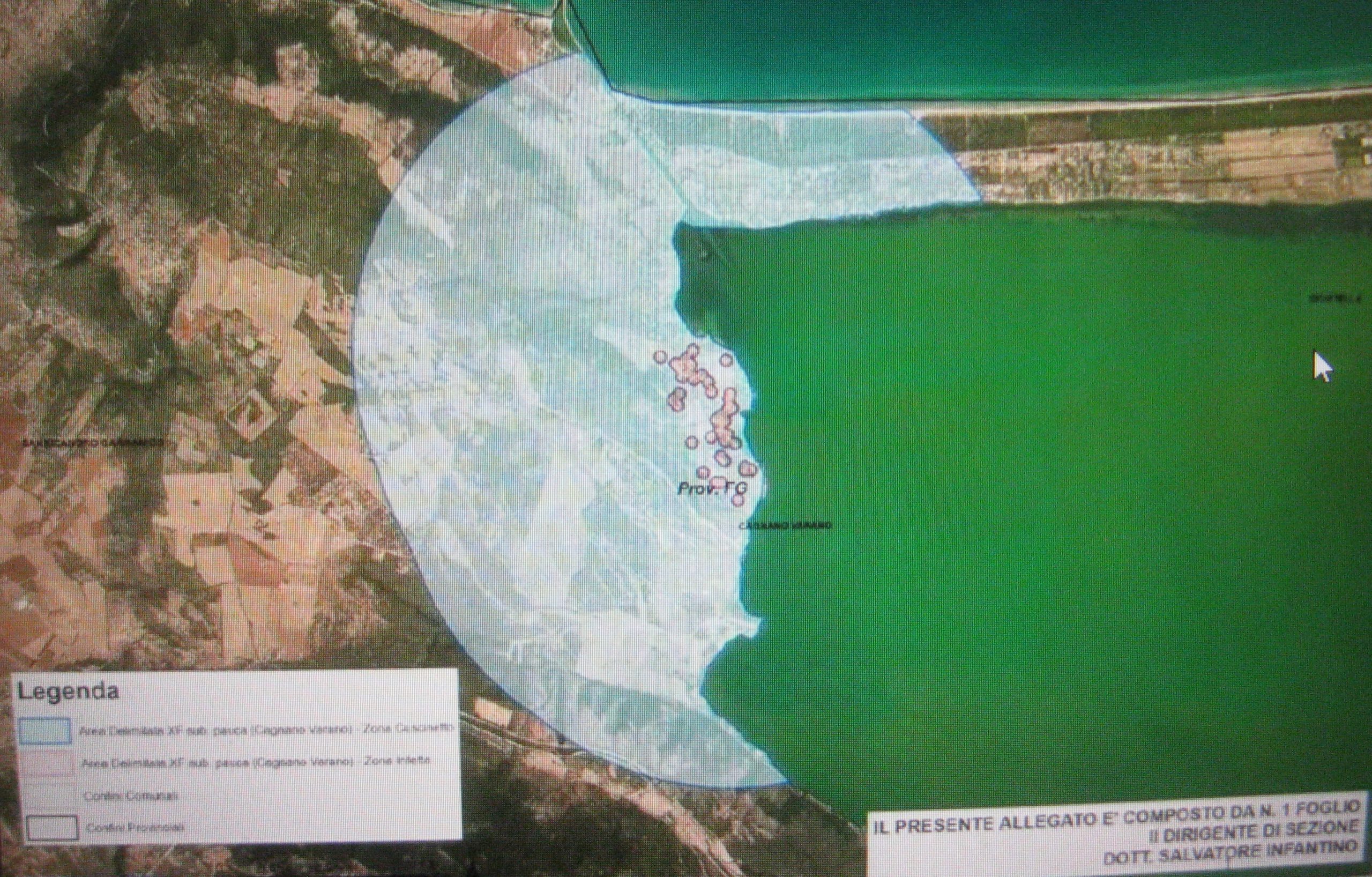 La Xylella fastidiosa sottospecie pauca ha allungato il passo e con un “salto” di oltre 160 chilometri è arrivata nel Foggiano, esattamente a Cagnano Varano, sulle sponde del lago Varano, infettando bene 47 olivi.