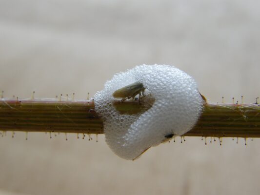 Neanide di Philaenus spumarius (sputacchina media) in ambiente naturale.