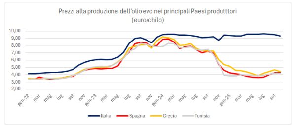 Il prezzo dell’evo spagnolo continua a viaggiare sui livelli normali, escludendo quindi i due anni quando ha raggiunto i livelli record di oltre nove euro, con Grecia e Tunisia che, come di consueto, seguono tale andamento. Negli ultimi mesi l’evo spagnolo si è attestato intorno ai 4,20 euro al chilo.